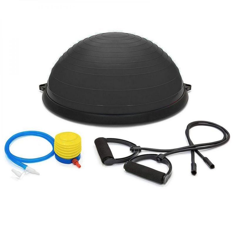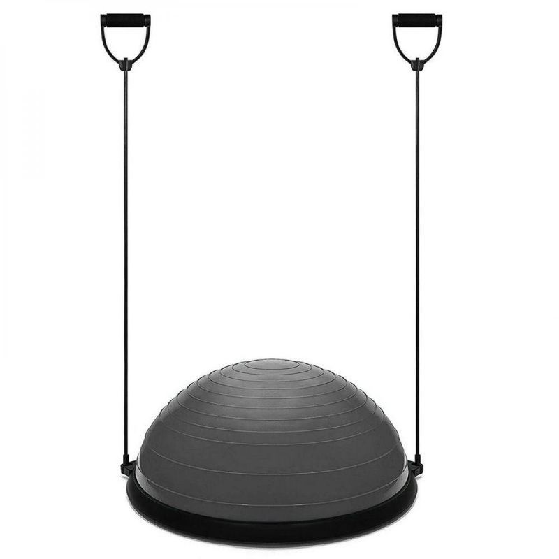 A meia bola com puxadores da WCT Fitness propicia aumento considerável na flexibilidade, fortalecimento e tonificação de músculos, além de auxiliar em diversos exercícios, como de abdominais, estabilidade e equilíbrio. É de fácil limpeza. Deve ser inflada com uma bomba convencional. Tem superfície emborracha que promove melhor aderência, suporta até 180kg. É indicado para condicionamento físico, auxílio na perda de peso e melhora da postura e equilíbrio. As cordas são para auxiliar no trabalho de equilíbrio, tonificação de braços e pernas.