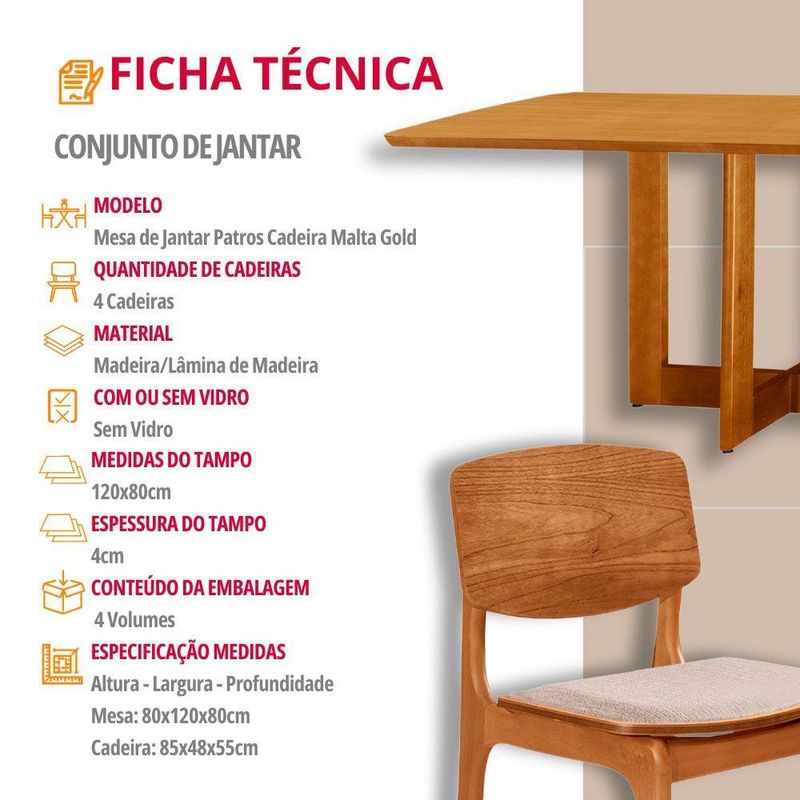 As cadeiras Malta Gold, feitas em madeira macica, unem resistencia e um design minimalista. O assento estofado proporciona conforto, e o encosto de madeira adiciona um charme rustico e elegante. Juntos, a mesa e as cadeiras criam um espaco acolhedor e estiloso, perfeito para quem busca um ambiente de qualidade, bom gosto e conforto.