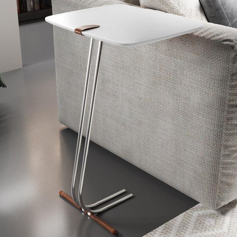 Mesa Apoio Lateral Para Sofá Lisboa Pé Cromado Larflex Cor:branco