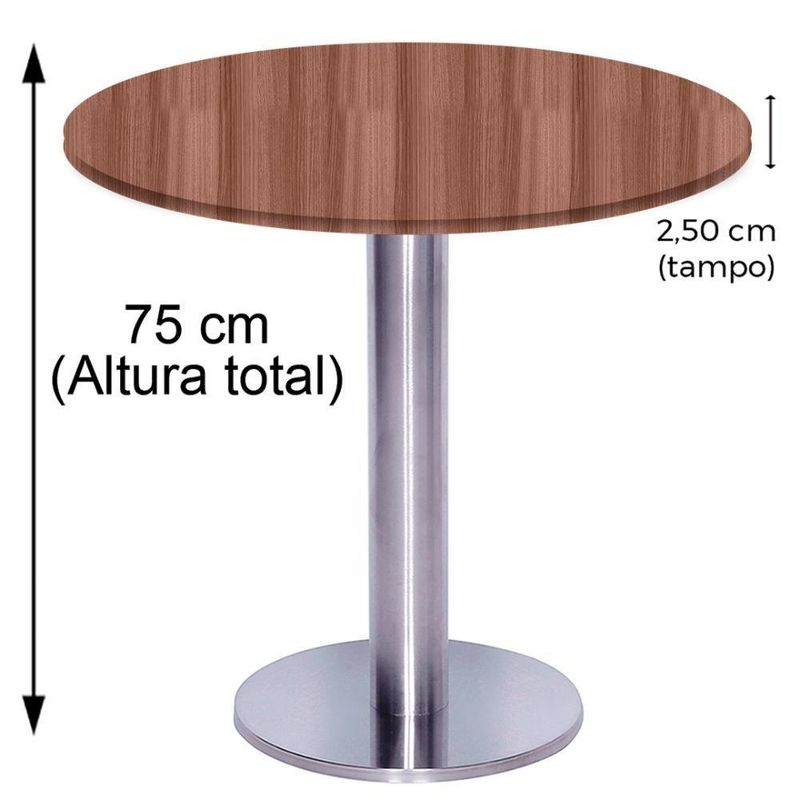 Mesa Beta Big Inox 75 Cm (alt) Disco Redondo Tampo Mdp Redondo 70 Cm (larg) X 2,50 Cm (alt) Walnut
