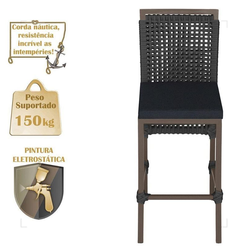 Mesa Bistro E 4 Banquetas Roma Marrom Corda Náutica 12 Preta