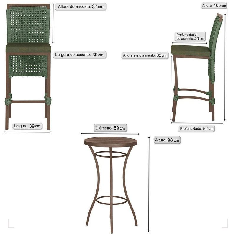 Mesa Bistro E 4 Banquetas Roma Marrom Corda Náutica 13 Verde