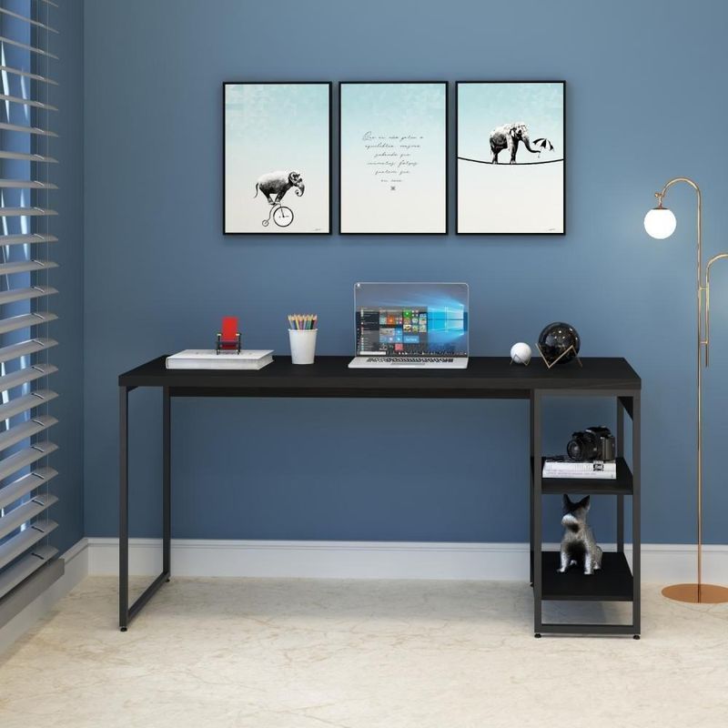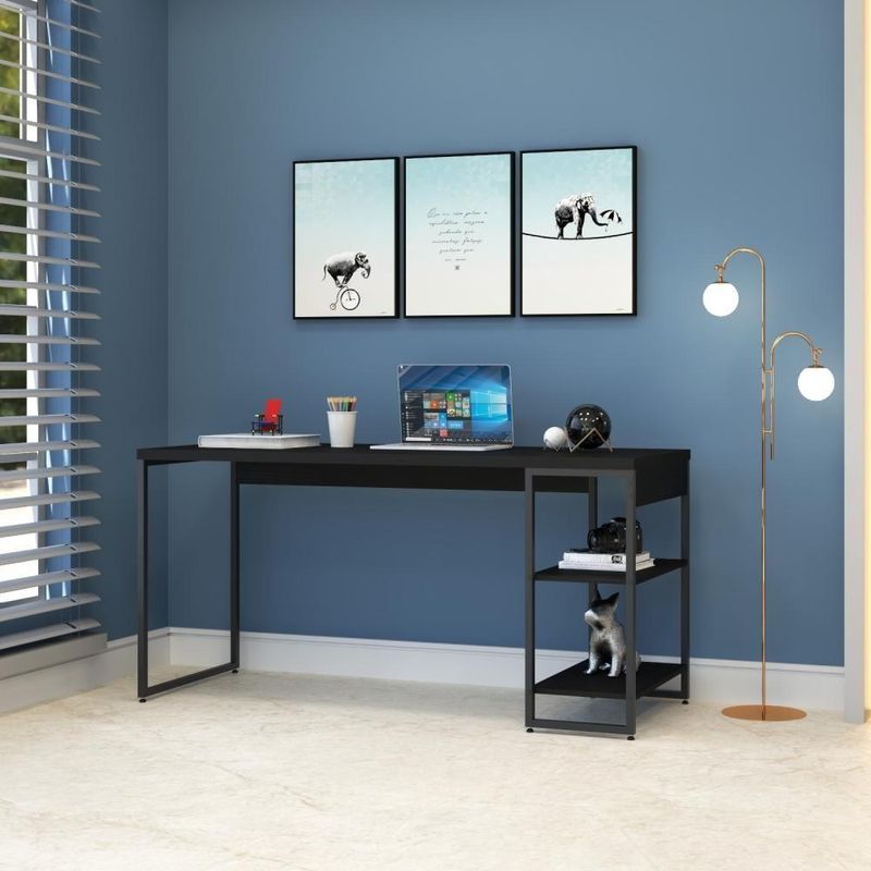 Mesa C/estante Baixa 150x64x75cm C/02 Prateleiras Preto ônix / Est.preta Preto ônix / Est.preta
