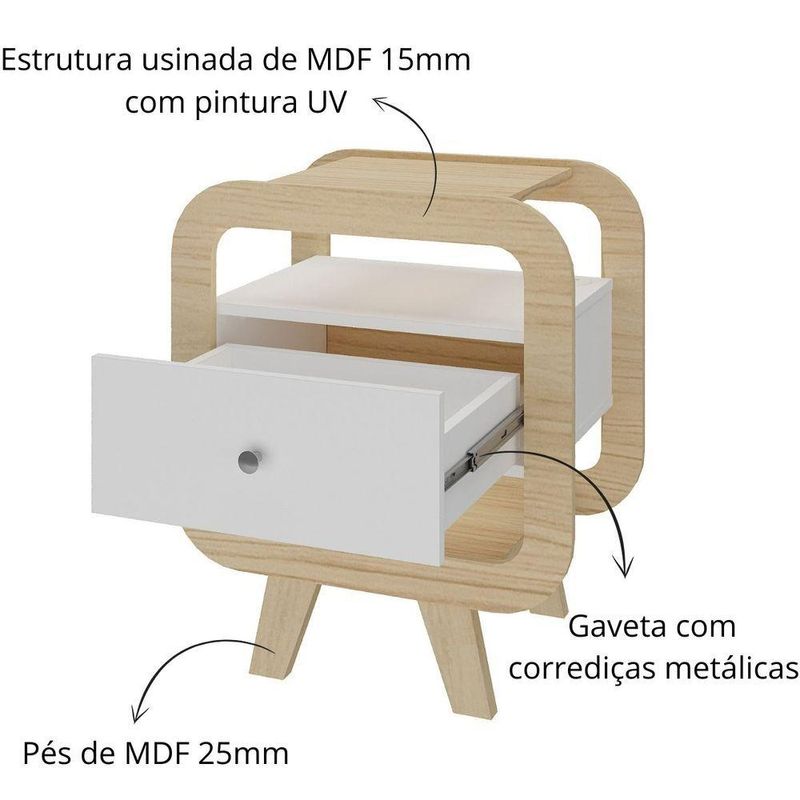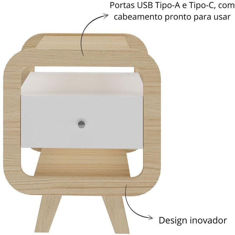 Mesa De Apoio Lateral Com Usb Artely Theo Naturale / Branco