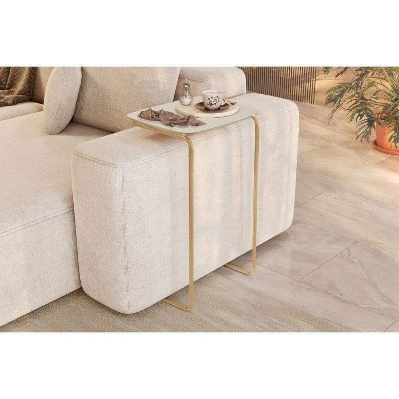 Mesa De Apoio Slim Off White Em Metal Ouro
