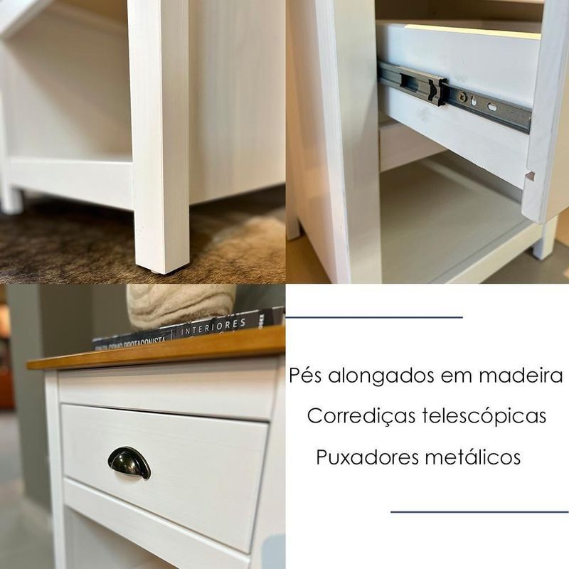A Mesa de Cabeceira é a combinação perfeita para quem busca um móvel sofisticado e atemporal. Produzida em madeira maciça de pinus de reflorestamento, sua estrutura robusta garante durabilidade e resistência. Seu acabamento com pintura acetinada em verniz PU e UV realça a beleza natural da madeira enquanto protege contra desgastes do dia a dia. O design funcional inclui 01 gaveta com corrediças telescópicas, permitindo uma abertura suave e silenciosa, além de 01 nicho aberto, ideal para acomodar livros, revistas ou objetos decorativos. O puxador metálico no estilo concha agrega um charme artesanal, enquanto os pés alongados em madeira trazem leveza e sofisticação ao móvel. Este móvel chegará em sua casa separado em 01 volume.