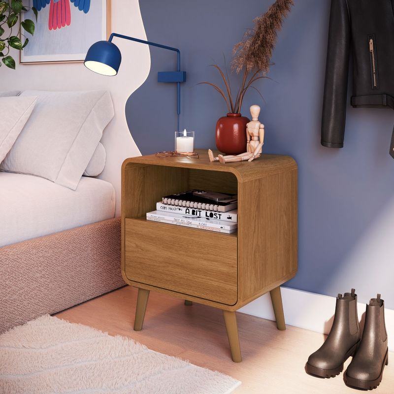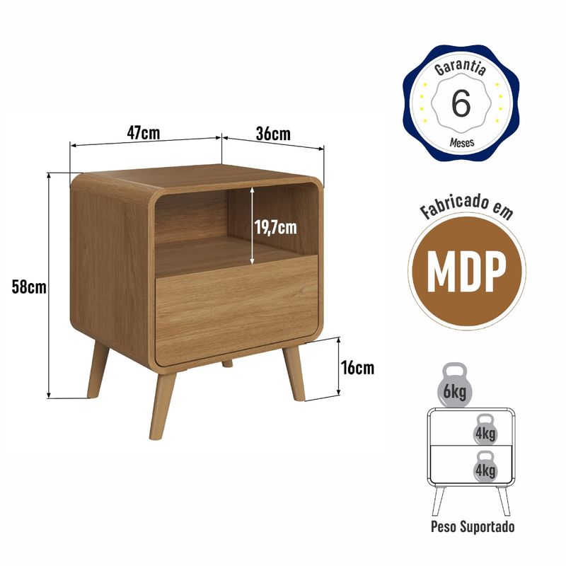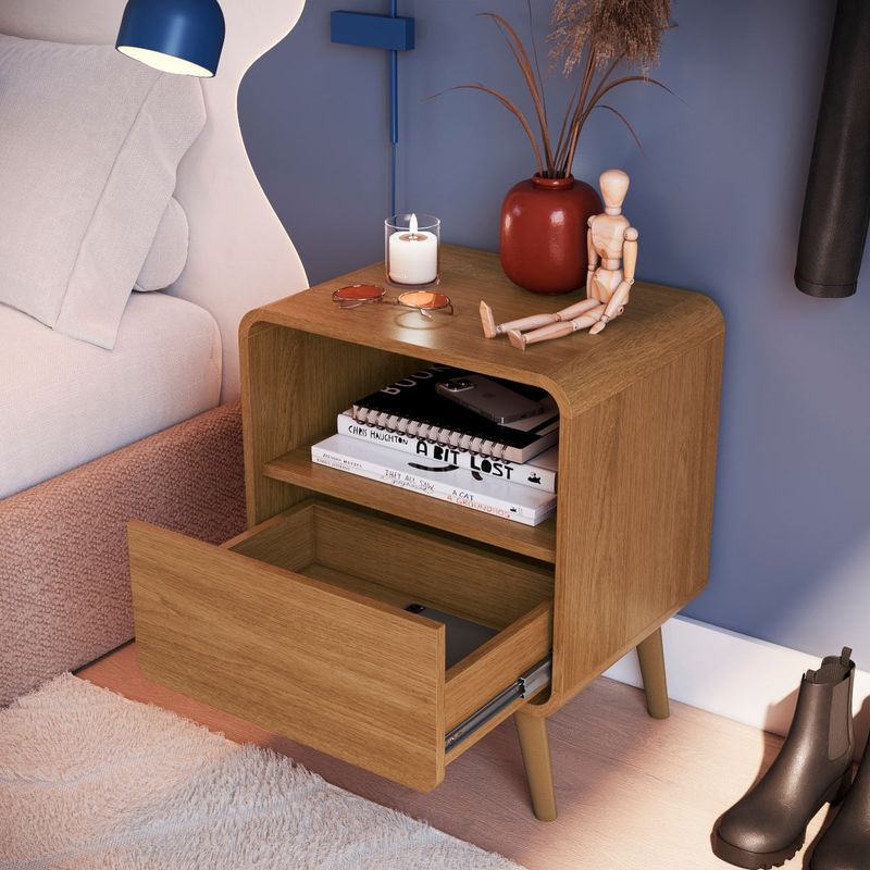 A Mesa de Cabeceira com 1 Gaveta da Linha Curve da Completa Móveis é a escolha ideal para quem busca aliar funcionalidade, praticidade e um toque de elegância ao ambiente. Com design arrojado e traços atemporais, esse móvel se destaca pelos cantos arredondados que proporcionam leveza e sofisticação ao quarto. Fabricada com molduras laterais em MDP de alta qualidade, oferece maior durabilidade e resistência no dia a dia. A gaveta conta com corrediça telescópica, que garante um deslizamento suave e eficiente, ideal para guardar objetos de uso pessoal. Os pés plásticos complementam o visual moderno com estabilidade e leveza. Perfeita para compor quartos de casal ou solteiro, essa mesa de cabeceira é entregue desmontada, com manual de montagem incluso, facilitando o transporte e a instalação.