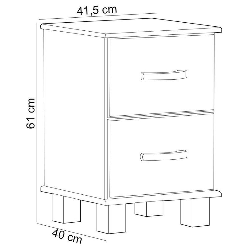 - Confira as dimensões do produto e certifique-se de que passará normalmente por supostos elevadores, portas, escadas e/ou corredores de sua residência. Altura: 61 cm | Largura: 41 cm | Com prateleiras: Não | Linha: Quarto | Material das dobradiças: na | Cor: Imbuia | Material das corrediças: Metálico | Com rodas: Não | Quantidade de gavetas: 2 | É personalizado: Não | Requer montagem: Sim | Inclui ferramentas de montagem: Não | Com corrediças: Sim | Material do cabo: Madeira | Com alça: Sim | Com bandeja removível: Não | Peso: 10 kg | Profundidade: 40 cm