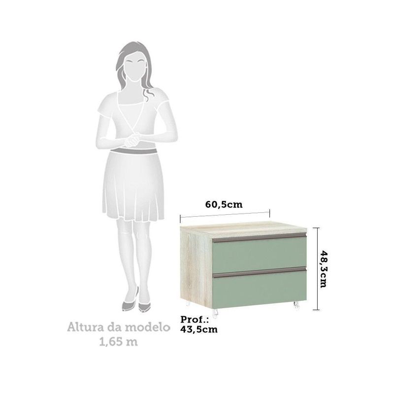 Mesa De Cabeceira Luciane 2 Gavetas Prime Plus 60 Cm Verde Jade