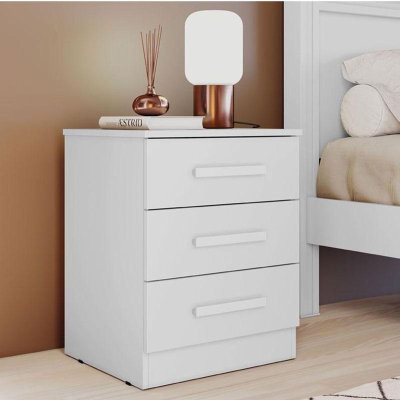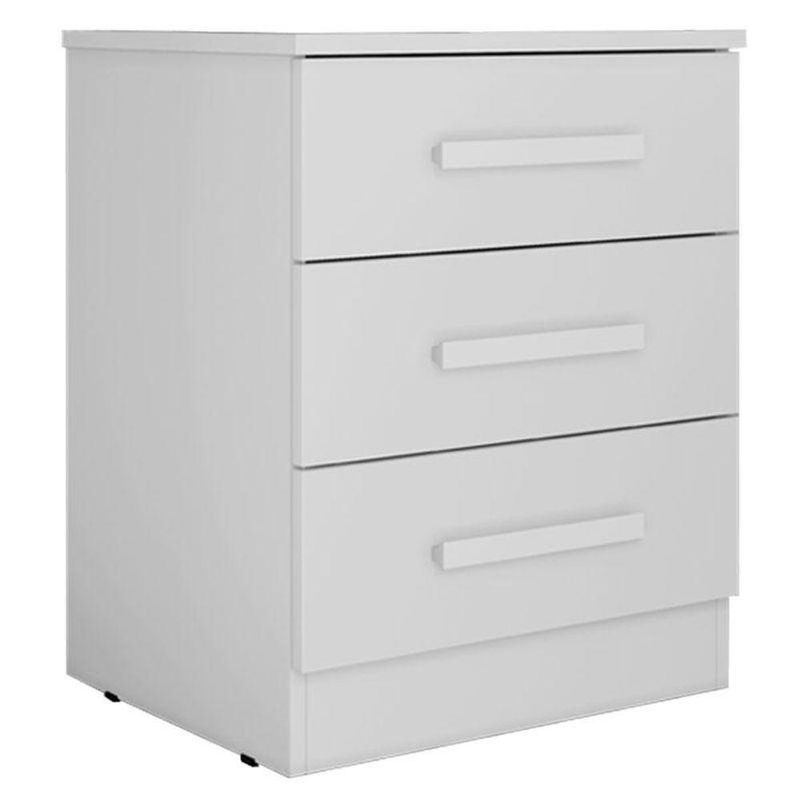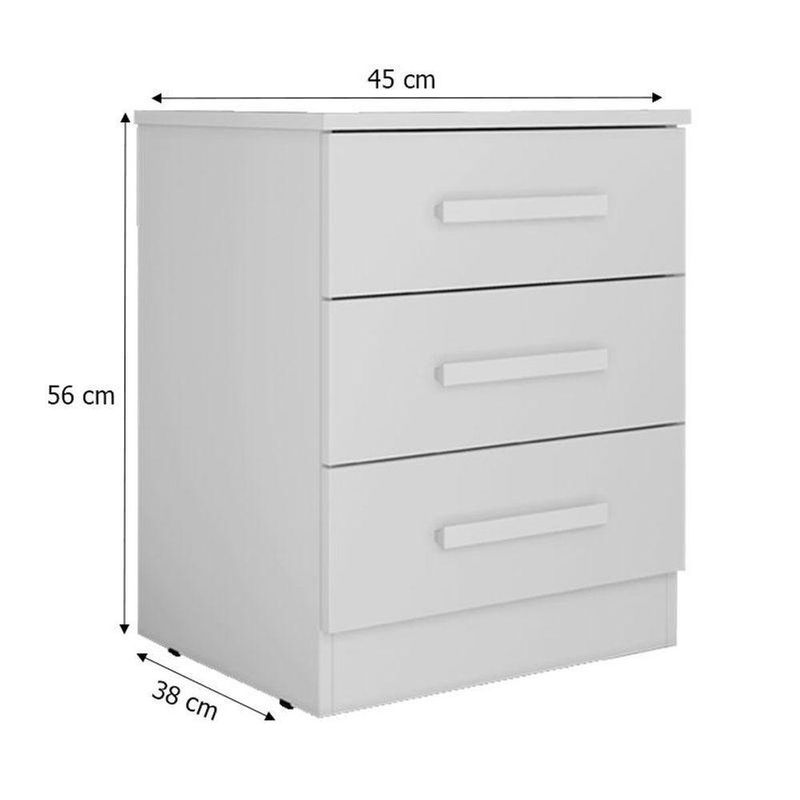 Mesa de Cabeceira Ambiente Milão Neve – Novo HorizontePrecisando de móveis para seu quarto? Apresentamos a mesa de cabeceira da linha Milão desenvolvida pela Novo Horizonte com materiais de excelente qualidade em MDP/MDF garantindo durabilidade e resistência. Possui 3 gavetas equipadas com corrediças telescópicas garantindo suavidade ao manusear, e oferecendo espaço extra para guardar acessórios e objetos, venha garantir já o seu!Características Técnicas: