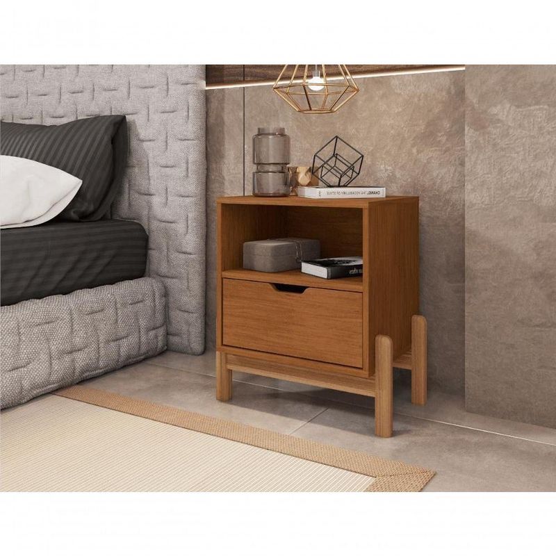 Mesa De Cabeceira Antares C/ Gaveteiro E Nicho Porta Itens Cedro