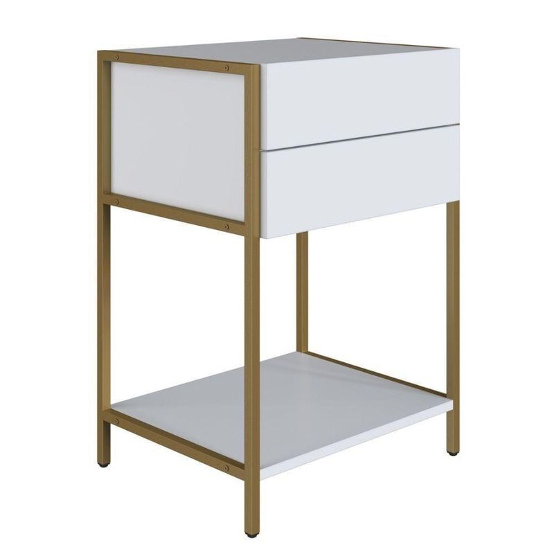 Mesa De Cabeceira Artesano 45 Cm (larg) Mdp Branco Aço Carbono Dourado Com 2 Gavetas E 1 Prateleira