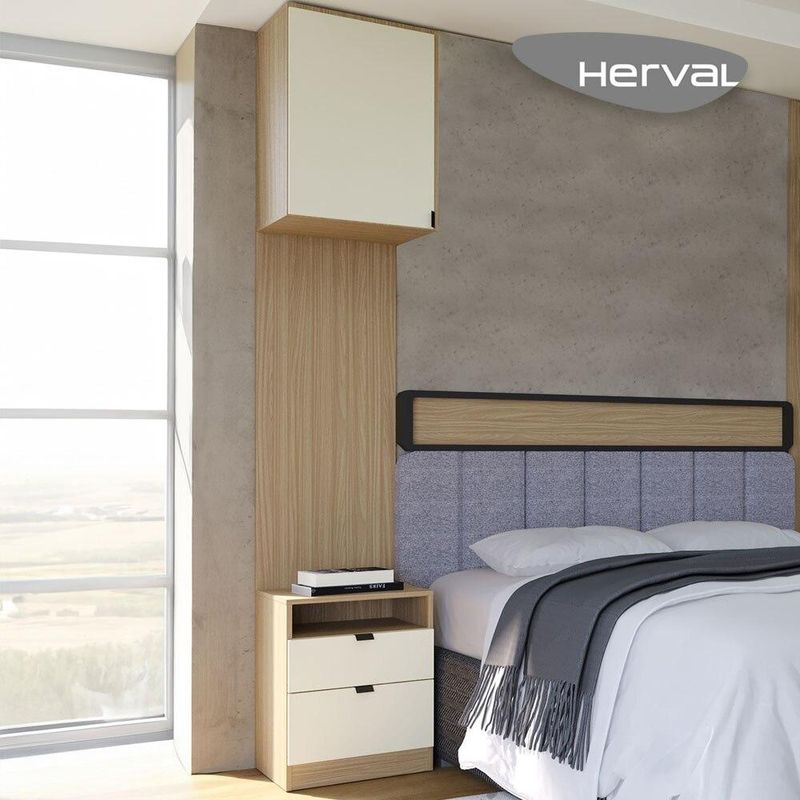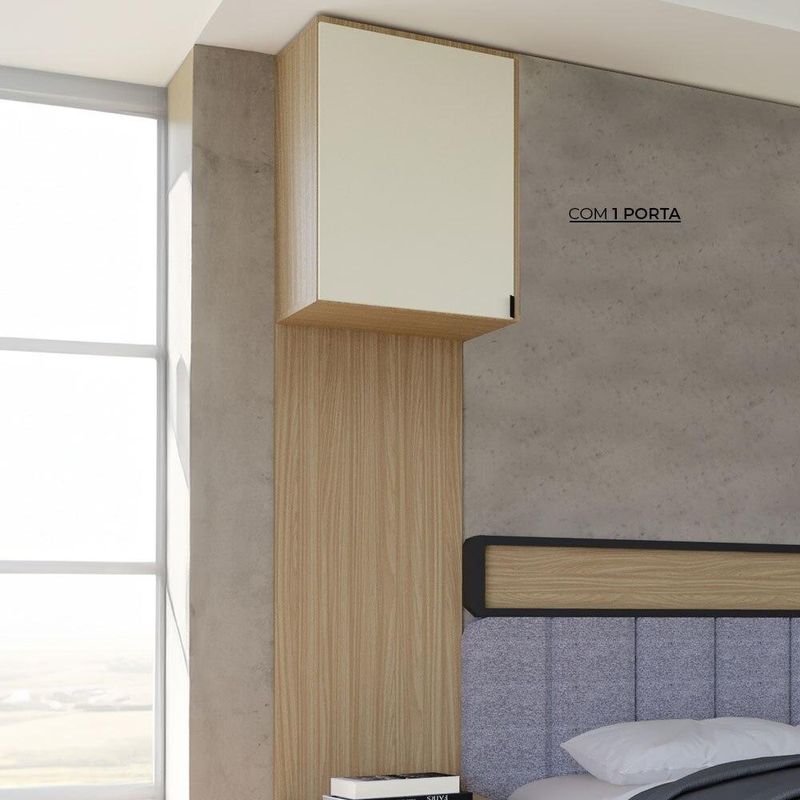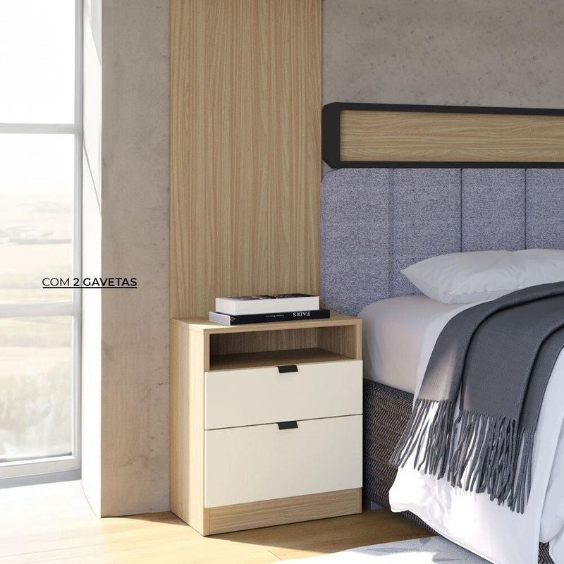 MESA DE CABECEIRA E ARMÁRIO ÉDEZ VALENCE, 1 PORTA E 2 GAVETAS, CEDRO E OFF WHITE