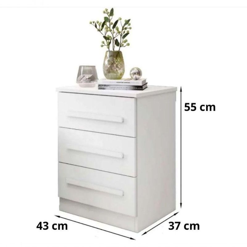 Mesa de Cabeceira Império Benetil MóveisA mesa de cabeceira Império com design clean trás charme e elegância, possui 3 gavetas com corrediças telescópicas, deixando tudo bem organizado. Ótimo custo benefício.EspecíficaçõesMedidas do produto montado55(A)x43(L)x37(P)cmMaterial do produto: MDPAcabamento: pintura UVPossui 3 gavetasPuxador externoPuxadores madeiradosCorrediças telescópicasPeso máximo por gaveta: 5kgNecessita de montagemComplexidade da montagem: média