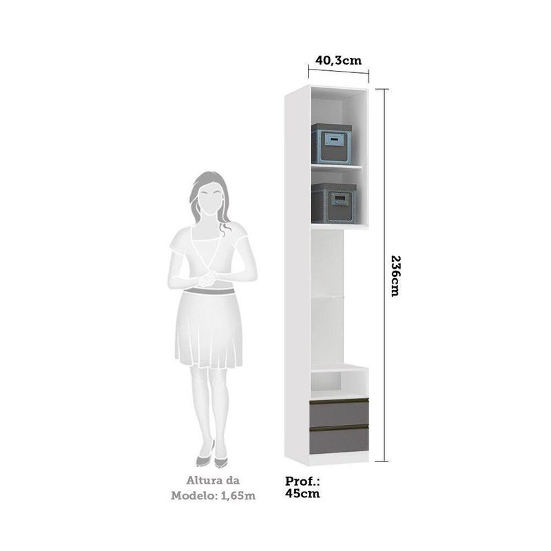 A Mesa de Cabeceira Lado Esquerdo Prime foi desenvolvido se adequando a vários espaços, de grandes a pequenos. Possui 236 cm de altura oferece divisórias para atender diversas necessidades e profundidade de 45cm. Produzido em MDP de 15mm, dobradiças Slowmotin reforçadas em 35mm, corrediças telescópicas, a montagem é inteira por minifix que proporciona um acabamento impecável e fundos embutidos com perfil usinado para melhor acabamento e maior resistência.