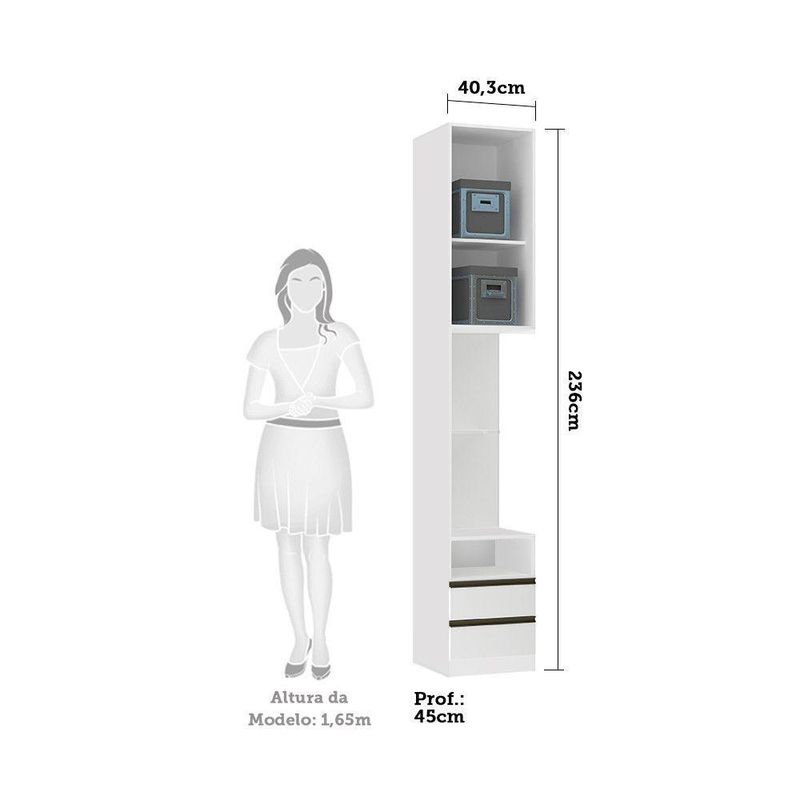 A Mesa de Cabeceira Lado Esquerdo Prime foi desenvolvido se adequando a vários espaços, de grandes a pequenos. Possui 236 cm de altura oferece divisórias para atender diversas necessidades e profundidade de 45cm. Produzido em MDP de 15mm, dobradiças Slowmotin reforçadas em 35mm, corrediças telescópicas, a montagem é inteira por minifix que proporciona um acabamento impecável e fundos embutidos com perfil usinado para melhor acabamento e maior resistência.