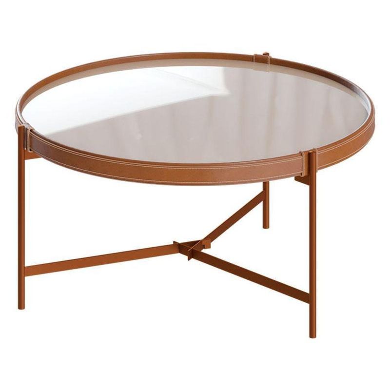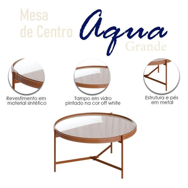 Mesa De Centro Ambiente Aqua Grande Com Vidro Off White Cobre - Imcal