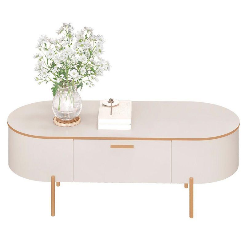 Mesa De Centro Para Sala Pés Metálicos Clover D04 Off White - Mpozenato