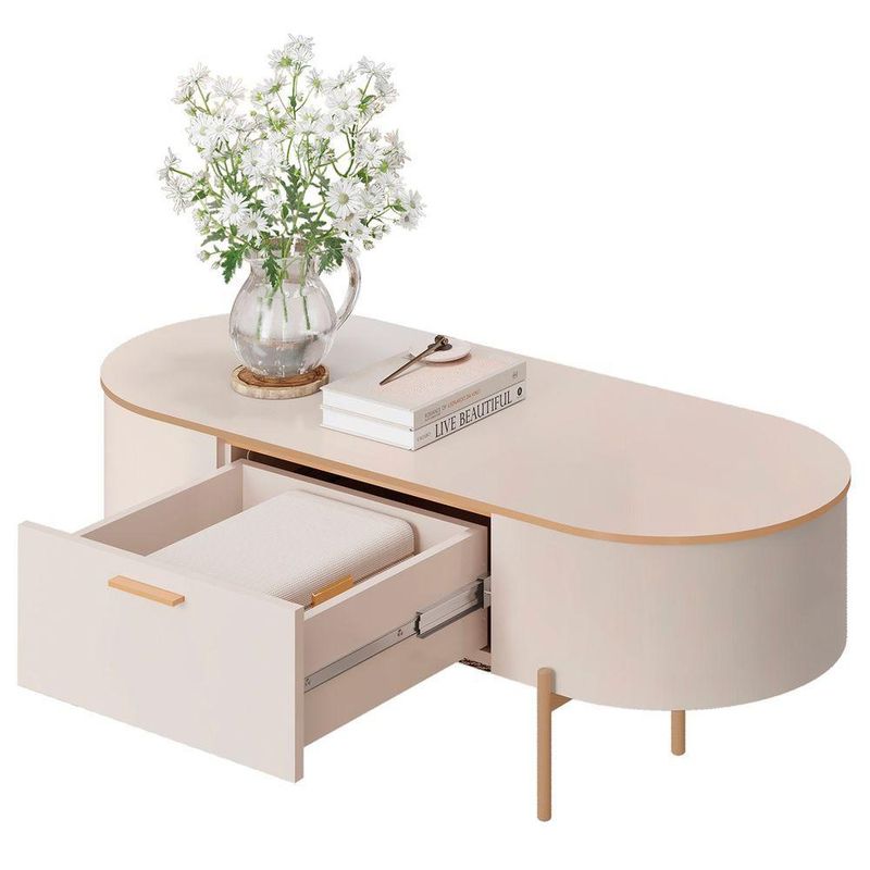 Seu estilo sofisticado apresenta laterais curvas e tampo usinado com cantos arredondados, adornado com pintura PU dourada, seguindo as tendências de decoração mais atuais. Com uma gaveta equipada com corrediça telescópica e puxador metálico dourado, oferece um espaço prático e funcional para organizar seus objetos. Produzida MDF de alta qualidade, a estrutura da Mesa de Centro para Sala é reforçada com pés metálicos cilíndricos dourados, garantindo durabilidade e facilidade na limpeza. Este móvel não só embeleza o ambiente, mas também se harmoniza perfeitamente com outros elementos de decoração, tornando seu espaço ainda mais aconchegante. Aproveite para transformar sua Sala de Estar com a Mesa de Centro e adicione um toque especial de charme e funcionalidade ao seu lar.