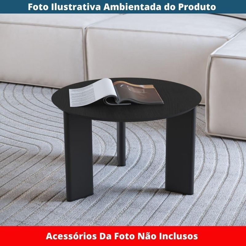 Mesa De Centro Redonda Orgânica Chanfrada Artesano 60 Cm (larg) Mdp Nero (preto) Pés Madeira Maciça