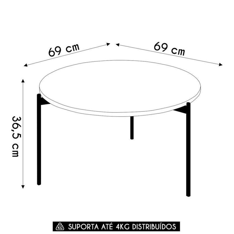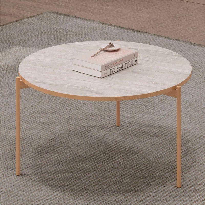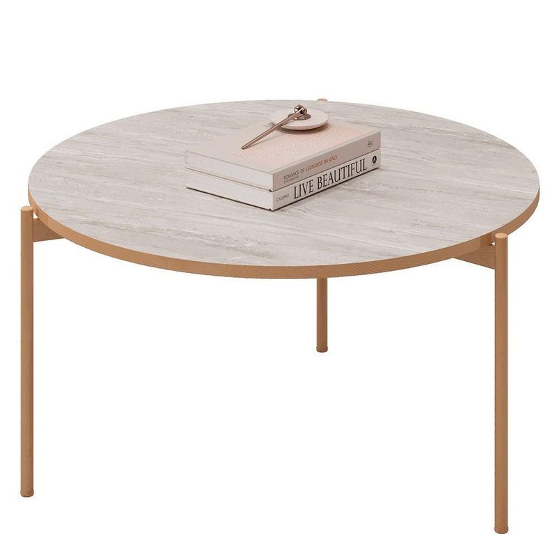 Mesa De Centro Redonda Para Sala Pé Metal Nala D04 Quartzo - Mpozenato