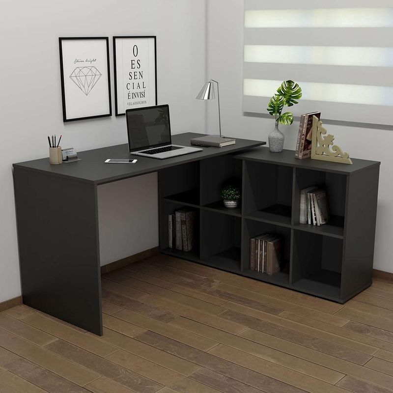 Mesa De Escritório Em L 8 Nichos Dakota Preto