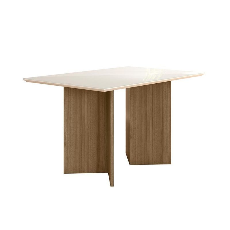Mesa De Jantar 4 Lugares 1,36m Tampo Com Vidro Napoles Carvalho Off-white