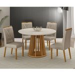 Mesa De Jantar Ambiente Rose Cinamomo Off White Com 4 Cadeiras Lara Veludo Bege - Valdemóveis