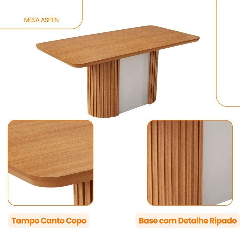 Mesa De Jantar Aspen 180cm Tampo Mdf Canto Copo Moderna Naturalle/off White
