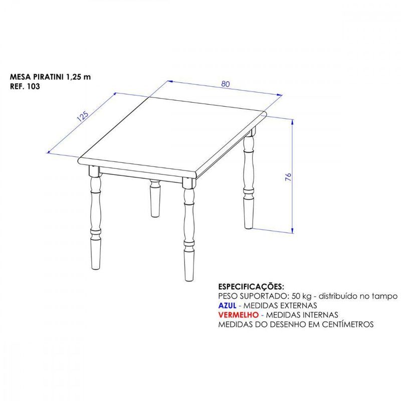 Dimensoes da mesa:
