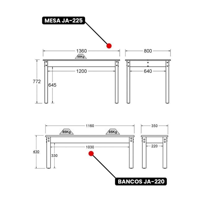 Mesa de Jantar Ditália 2 Bancos Ja-220 + Ja-225 Diamond