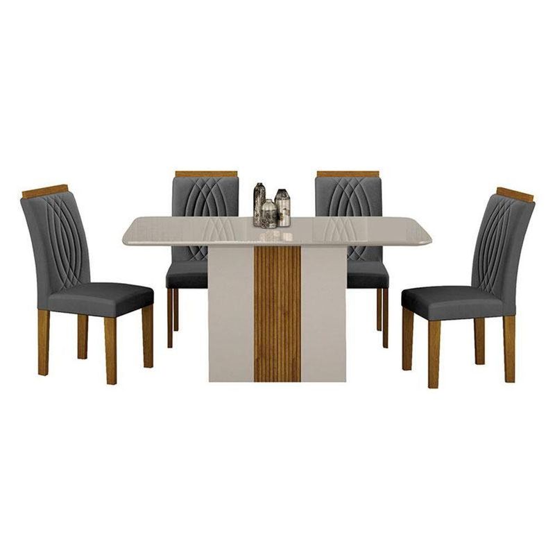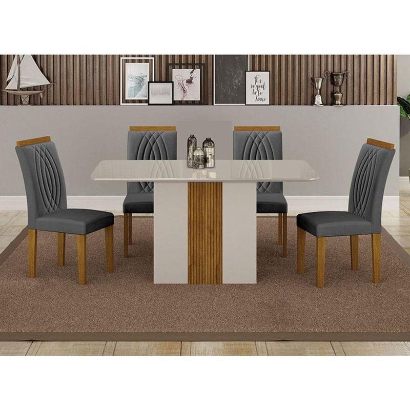 Mesa De Jantar Doha 120x80 Off White Decor Off Com 4 Cadeiras Freijó Joli Chumbo - Leifer Móveis