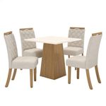 Mesa De Jantar Dora 90cm Canto Reto Sem Vidro Ambiente Nature Off White Com 4 Cadeiras Bella Linho - Henn