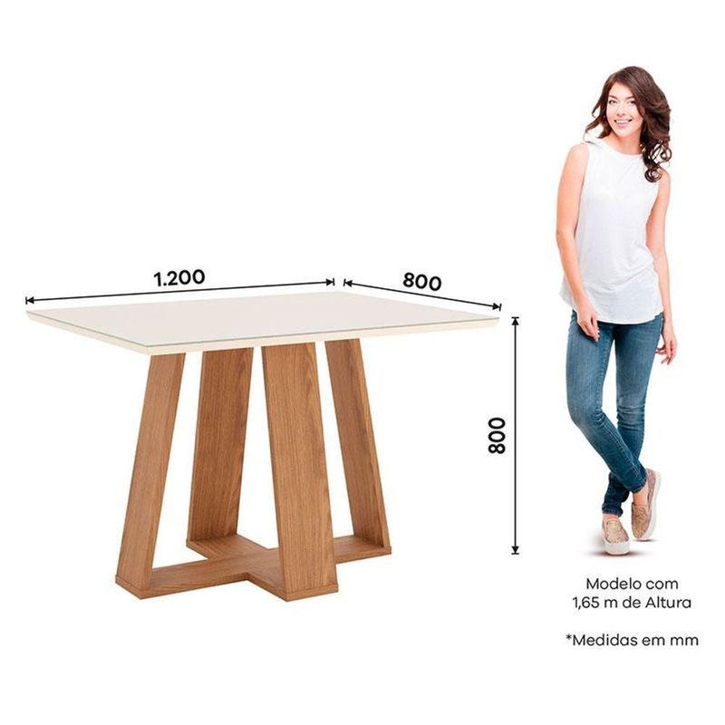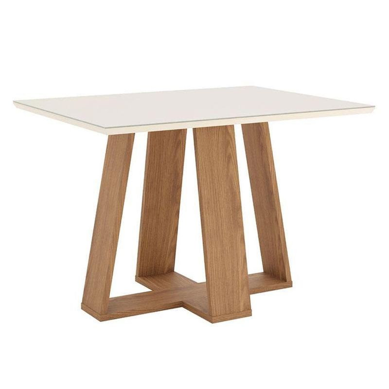 Mesa De Jantar Lins 120 Cm Ambiente Canto Reto Com Vidro Nature Off White - Henn