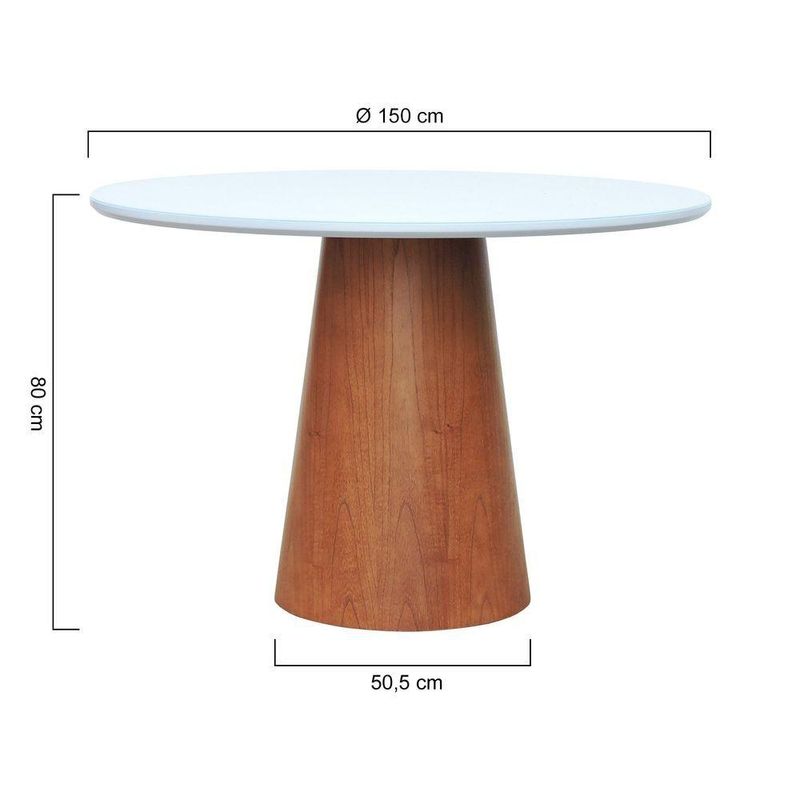 Mesa De Jantar Tampo Em Vidro Base Cone Laminado Cinamomo Amêndoa Tampo ø150 Branco/vidro Branco
