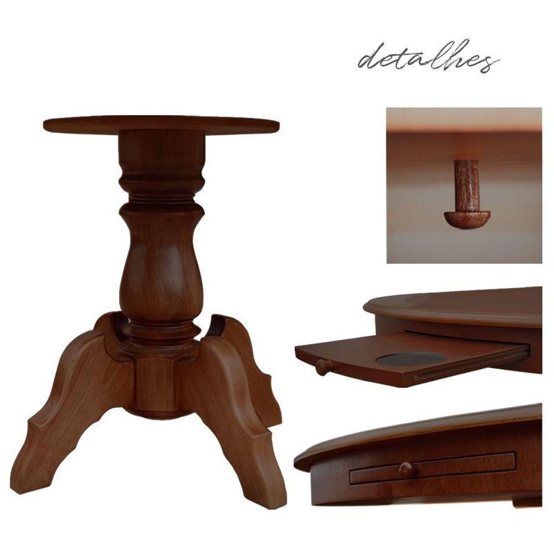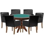 Mesa de Jogos Carteado Redonda Montreal Tampo Reversível Imbuia com 6 Cadeiras Liverpool PU Sintético Preto Matelassê - Gran Belo confeccionada em madeira maciça de jequitibá de forma artesanal, com compensado e MDF laminado. Possui pintura exclusiva com fundo e verniz, além de detalhes da própria madeira que proporcionam ao produto uma beleza única. Contém gavetas com puxadores em madeira e tampo reversível, possibilitando seu uso tanto para jogar cartas de baralho como para mesa de jantar, conseguindo agregar elegância e praticidade ao ambiente.