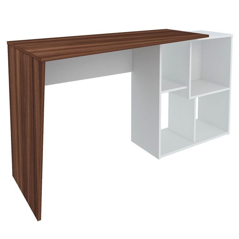 Mesa Escrivaninha 2 Em 1 Com Nichos Arbo A06 Ipê/branco - Mpozenato