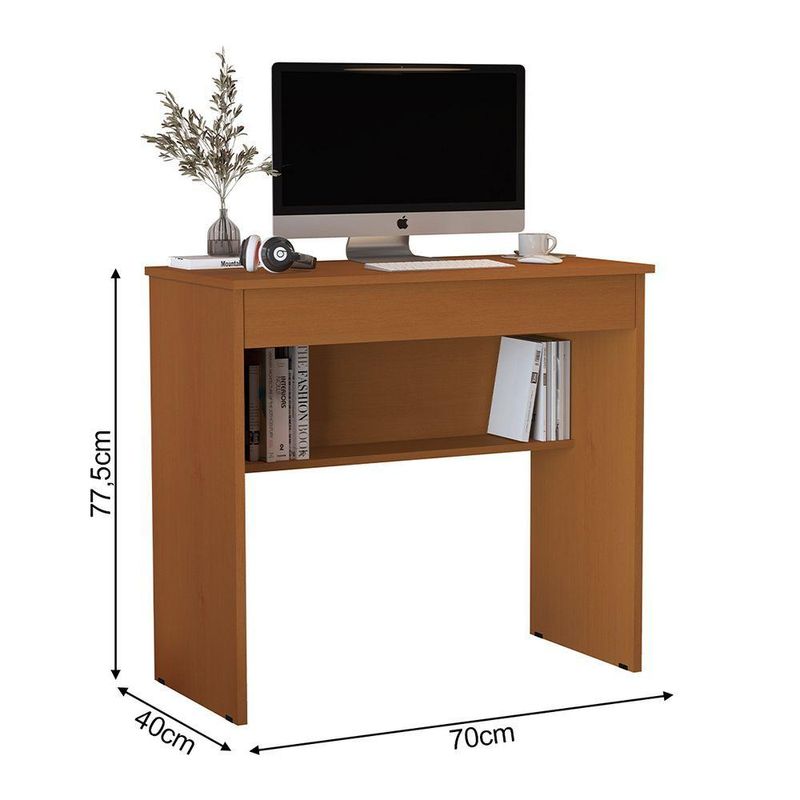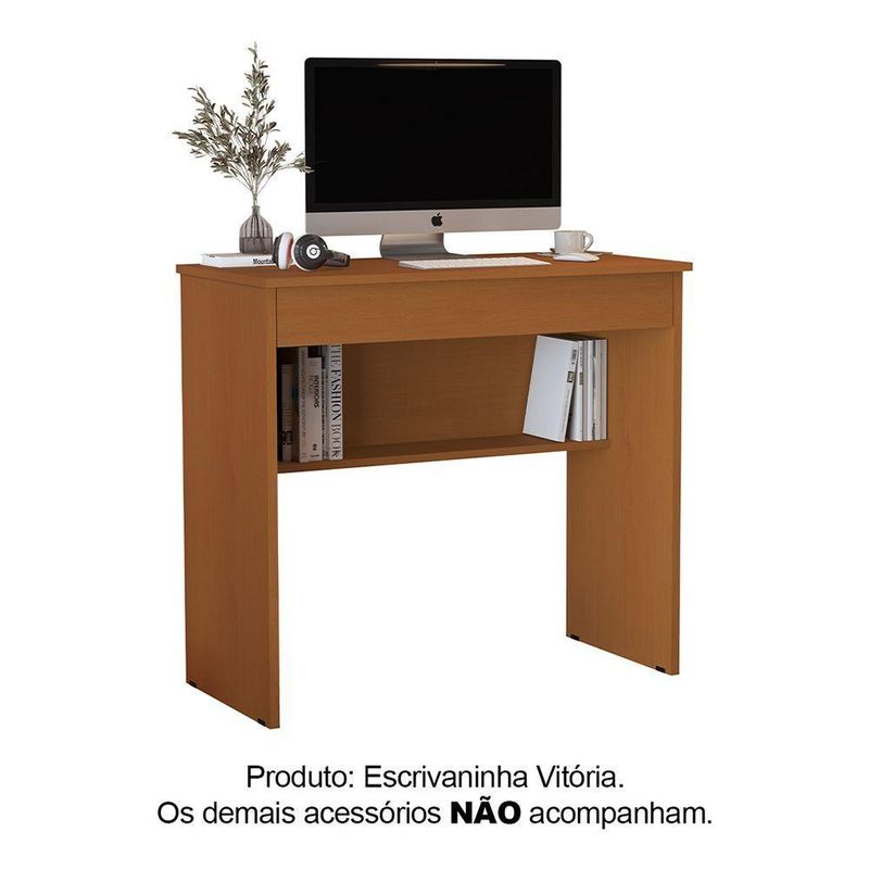 Organize seu espaço com muito mais praticidade e elegância! A Mesa Escrivaninha Vitória foi desenvolvida para quem busca um ambiente organizado, seja para estudos, home office ou atividades do dia a dia. Seu design moderno e minimalista combina perfeitamente com qualquer decoração, além de otimizar espaços.Características:Tipo: Mesa EscrivaninhaModelo: Vitória Cor: FreijoDesign compacto, ideal para ambientes com pouco espaço.Conta com uma prateleira inferior, perfeita para livros, materiais de escritório ou objetos decorativos.Tampo resistente, comporta , , monitor, teclado e acessórios.Dimensões:Altura: 77,5 cmLargura: 70 cmProfundidade: 40 cmPeso: 13 kgSuporta até 20 kg distribuídos uniformemente.ATENÇÃOAS IMAGENS SÃO MERAMENTE ILUSTRATIVAS E PODEM SOFRER VARIAÇÕES DE COR E PEQUENOS DETALHES DE ACORDO COM O SEU MONITOR, ILUMINAÇÃO DO AMBIENTE E ATÉ MESMO A SUA PERCEPÇÃO Escrivaninha Estudo Vitória Freijo