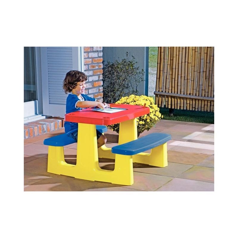 Mesa Infantil Picnic Colorida Em Polietileno Tramontina Para brincar com os amiguinhos, desenhar e comer um lanche, a mesa infantil Tramontina Pic-nic em polipropileno colorido. Adequada para a faixa etária com +24 meses, ela será uma grande aliada no desenvolvimento das habilidades das crianças. Sua produção é em polipropileno livre de materiais tóxicos e seu design conta porta lápis ou copo! Descrição do produto Marca: Tramontina Material: Polietileno Peso: Até 25 kg Faixa Etária: Mais de 24 meses Imagens meramente ilustrativas, todos os itens que ambientam o produto não estão inclusos.