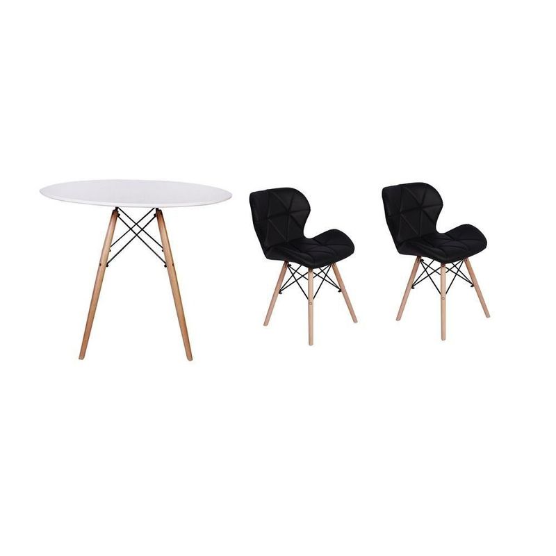 - Conjunto de Mesa Jantar Eiffel 80cm 2 Cadeiras Slim Wood Estufada