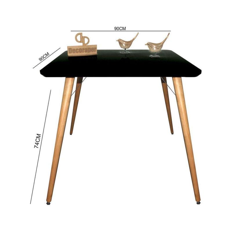 Mesa Jantar Pés Palitos Tampo Quadrado Vidro Laqueado 90cm Preto