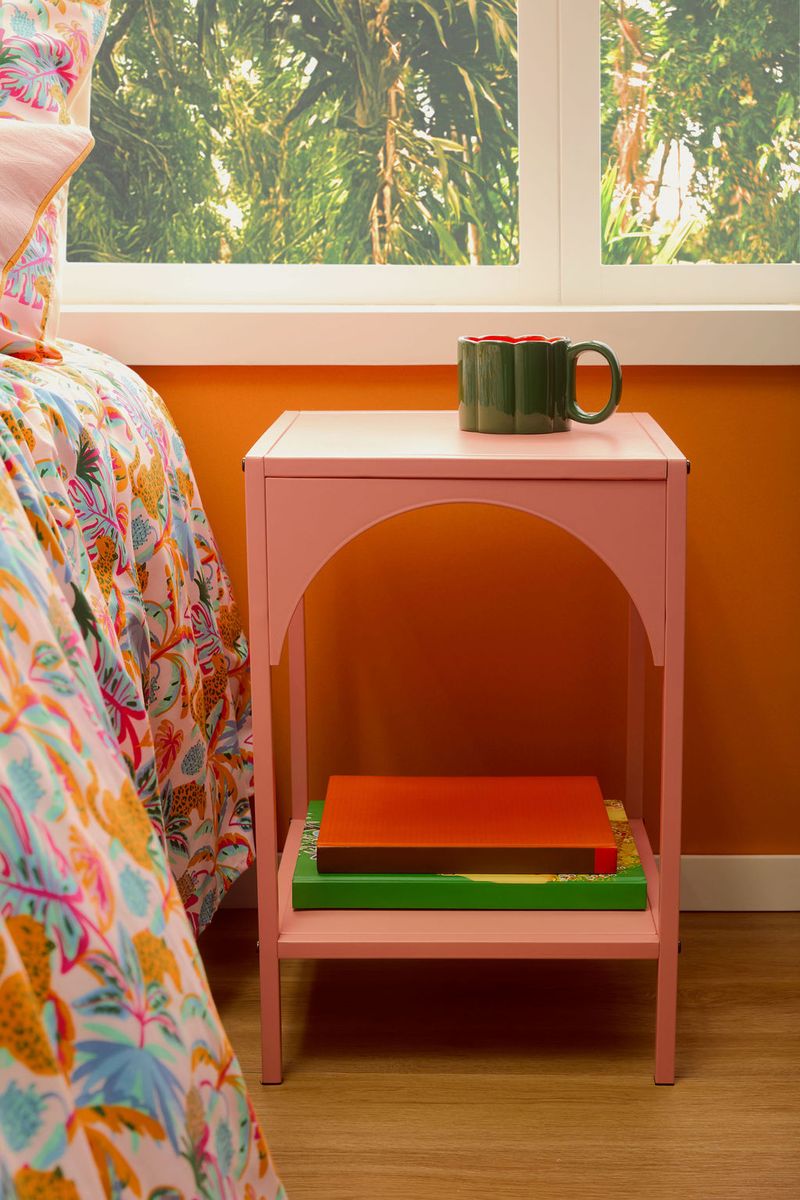 A Mesa Lateral Arcos da A\CASA é a escolha perfeita para quem busca funcionalidade com um toque moderno e delicado. Com estrutura em metal resistente e acabamento na cor rosa, ela adiciona charme e personalidade ao ambiente, seja na sala de estar, quarto ou escritório.
