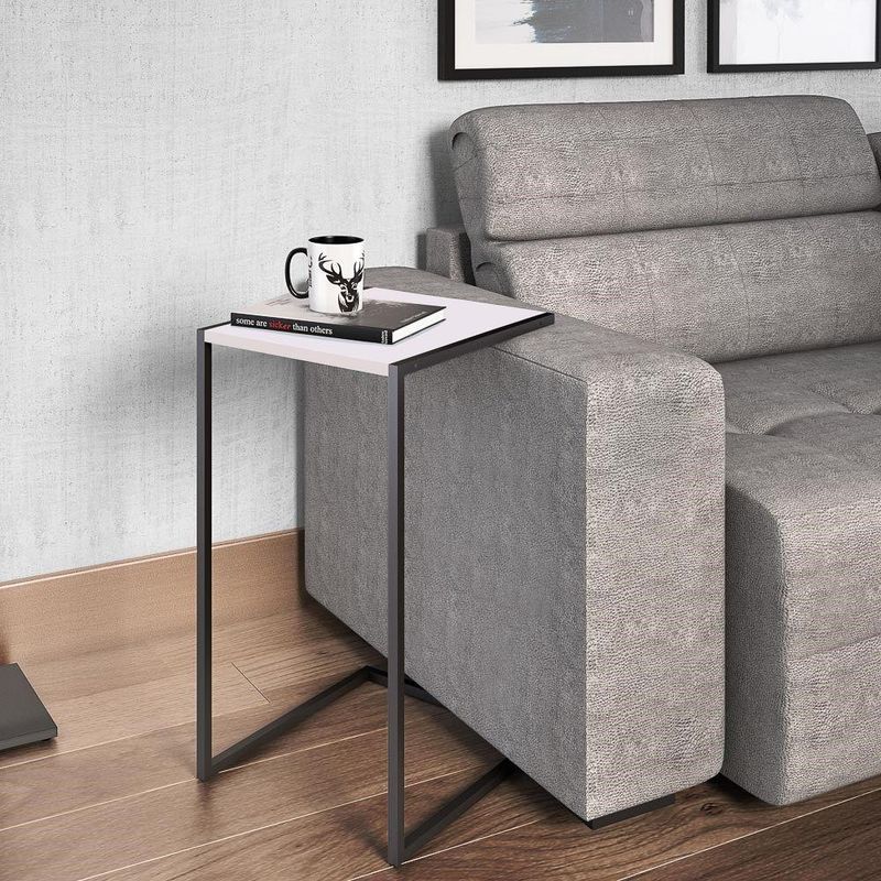 Mesa Lateral De Apoio Branco Base Preta Artesano