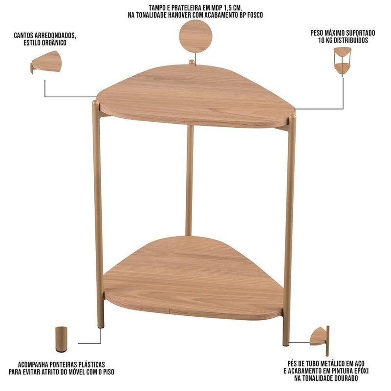 Mesa Lateral Para Sala De Estar Pés Metálicos Adek A03 Hanover Dourado - Lyam Decor