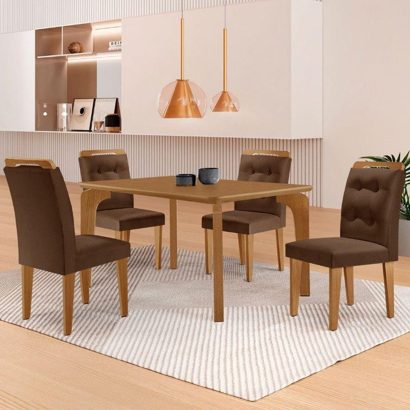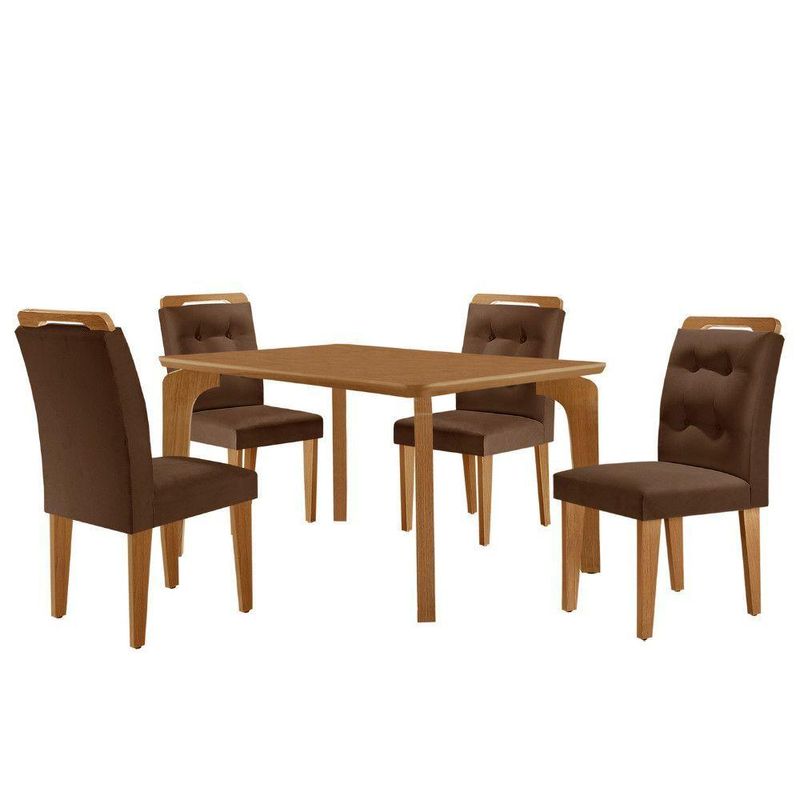 Mesa Liz 120 Mdf Canto Copo E Com 4 Cadeiras Carol Veludo Marrom/naturalle/naturalle