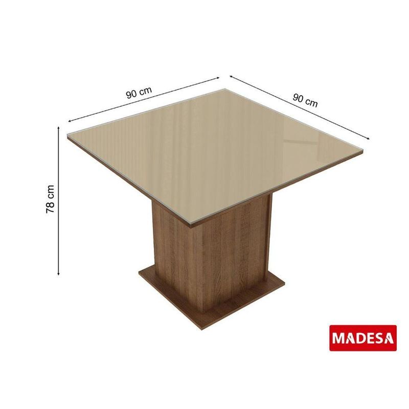Mesa Quadrada Rustic/Crema Tampo de Vidro Madesa 5363Ideal para quem dispõe de pouco espaço mas deseja o máximo de conforto e sofisticação!