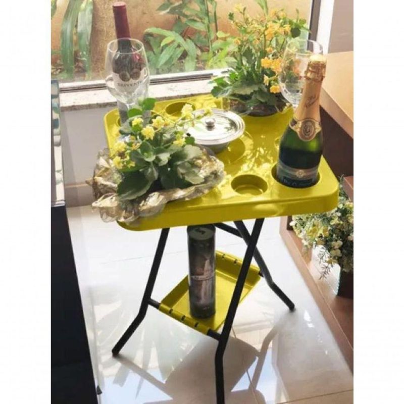 Mesa Mesinha Petisqueira Dobrável Portátil Cerveja Churrasco Amarela