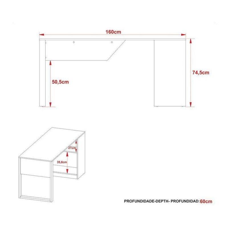 Dimensões(Cm): Comprimento(Profundidade): 60cm x Largura: 160cm x Altura: 74,5cm