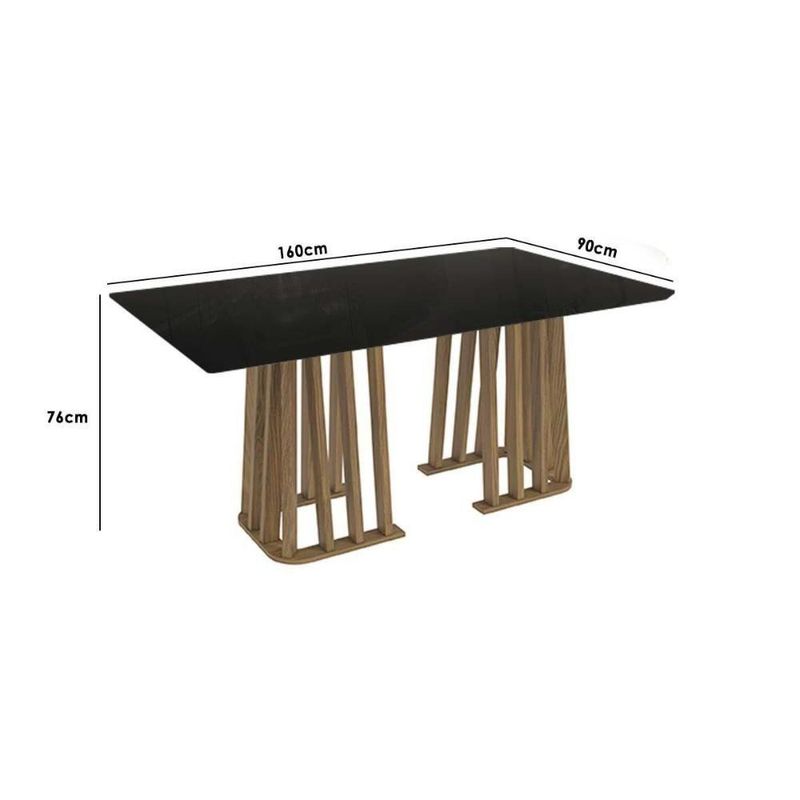Mesa de Sala Jantar Alteia c/ Tampo Madeirado c/ Vidro 160x90cm Nogueira/Preto Fosco - Kappesberg