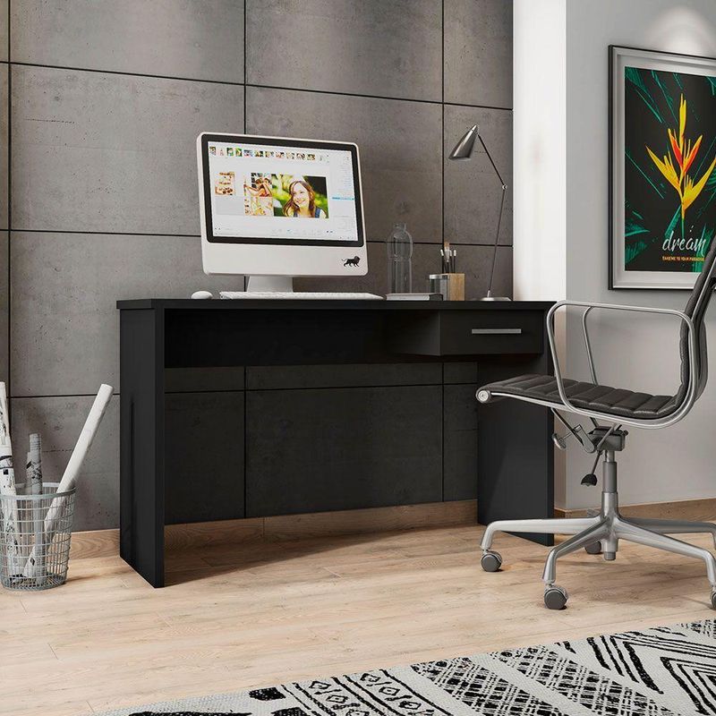 Mesa Para Escritório Home Office Com Gaveta Emma Preto Texturizado Gran Belo